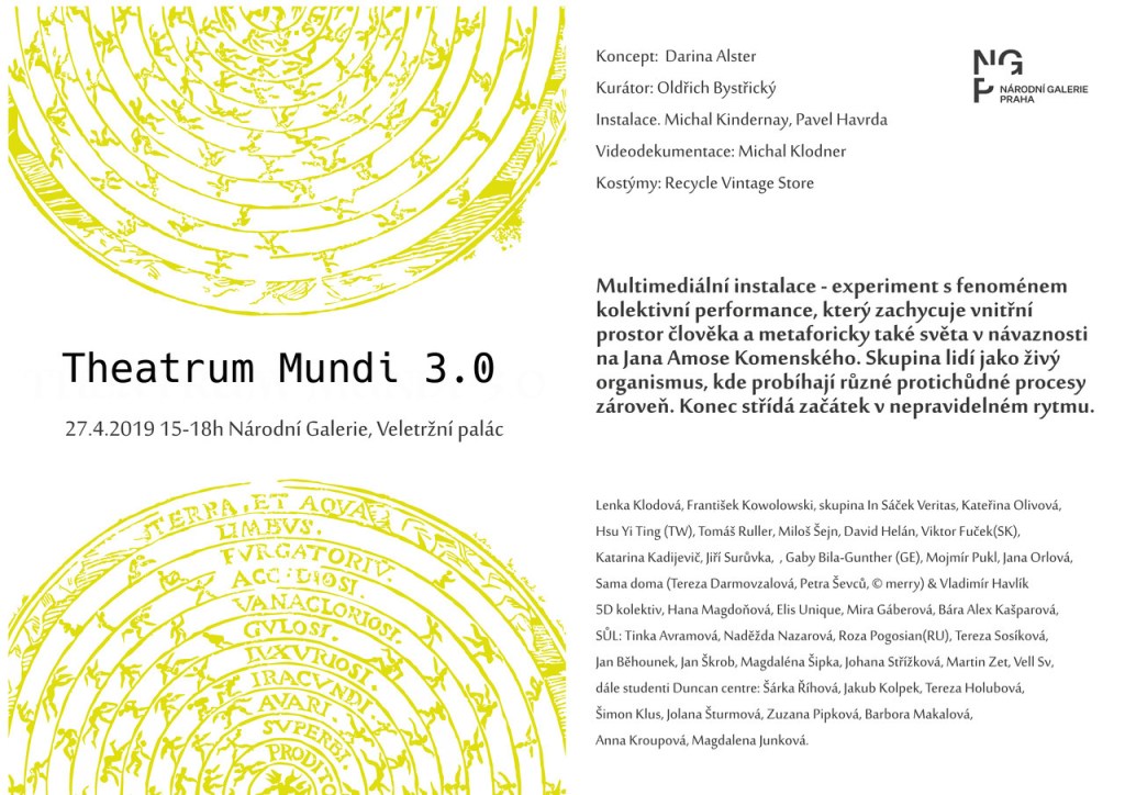 Enter Theatrum Mundi 27.4.2019 in National Gallery in Prague! Interactive installation and collective performance experiment will take place from 15h to 18h in Veletržní palace Prague.