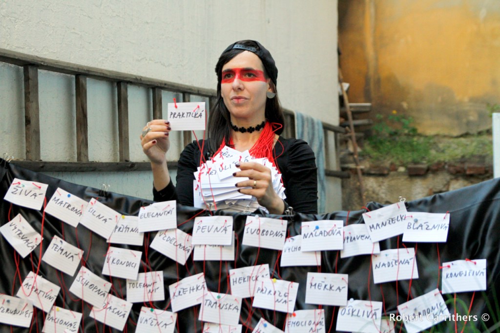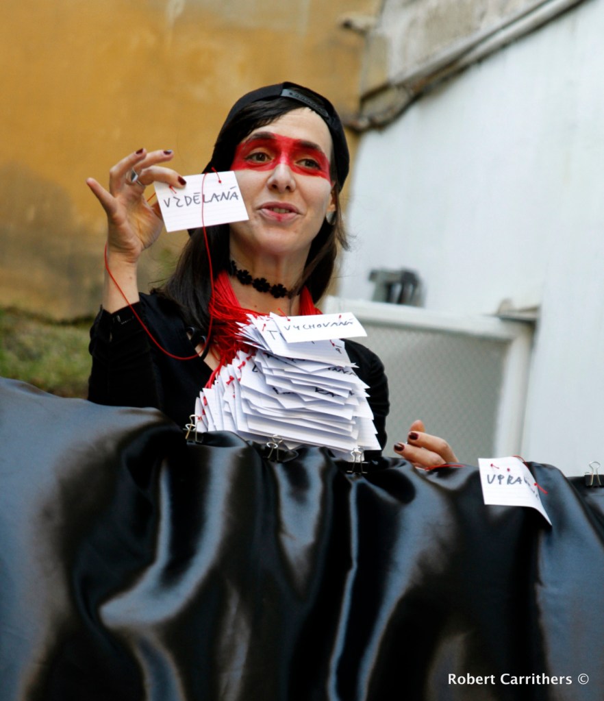 Darina Alster (1979) is visual artist, performer, publisher, curator and pedagog. She lives and works in Prague. She is mostly working with performance, spoken word, sound and video. Main topics of her artistic interest are Time, Identity and Relation ships. In her performances, she exceeds borders of known reality, interupting real situations with unknown and iracional things, then they will become the subconscious. She is mostly experimenting with new media, combine them with archaic medias, as a Astrology, Tarot, Mythology, Fairytales or other kinds of Archetypes. Her known projects are: Treasure, Piet, Personal Tarot, Naked Lunch, Bianca Braselli, Fembot, Thelematrix, Videoautomat, Memorial to victims of Capitalism, Imago Dei, The way of performance, Videoaltar, Dark Madona, Modern forms of invocating reality. darina.alster@gmail.com Zobrazte více příspěvků