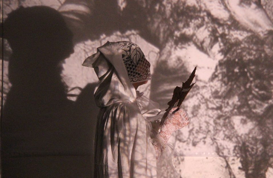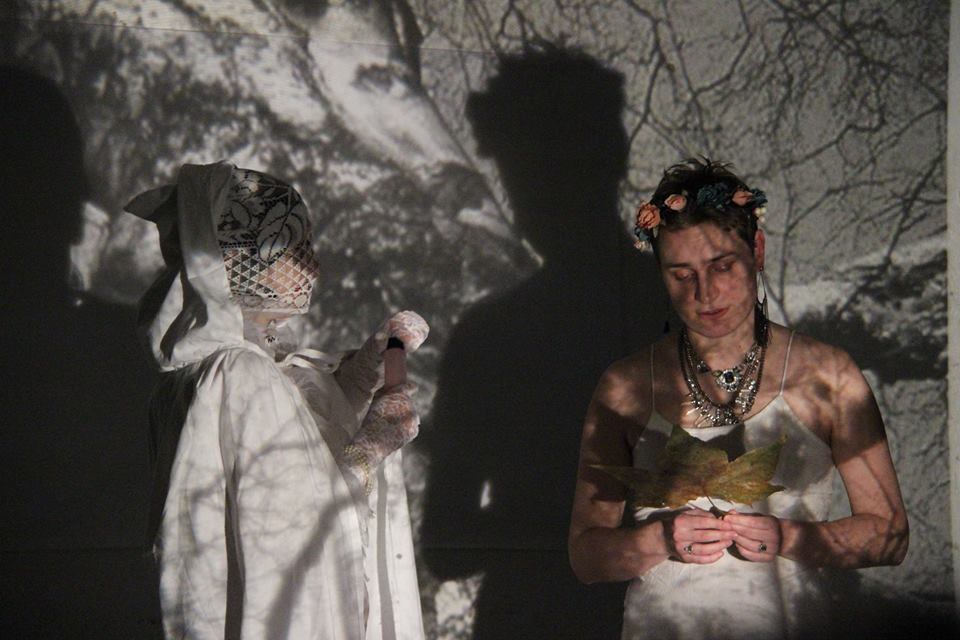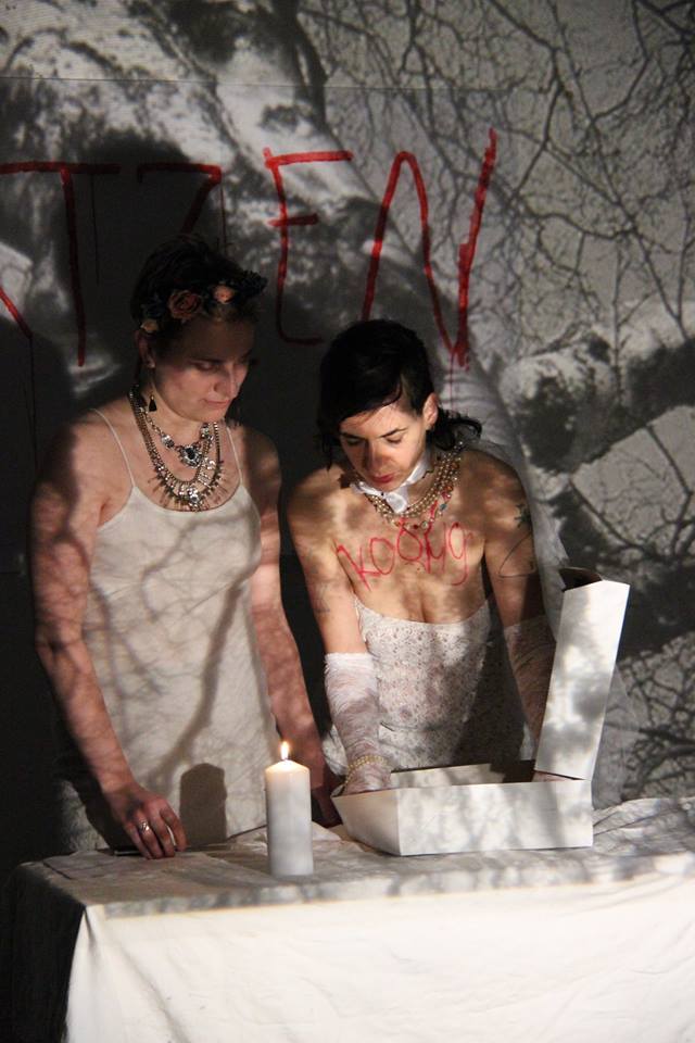 Performative dialog between Hildegarda von Bingen and Dorothee Solle. This performance we did with Magdalena Šipka at the openning of Revue Prostor in City space Hybernská, Prague. 22.11.2017