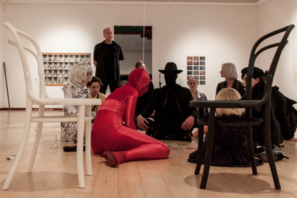 Performance Sale of Identities, which we did with Red Woman, Black Man, Multihand, Urban city as an Performade event in Tomas Ruller´s retrospective exhibition in GHMP Prague, 14.9.2018.