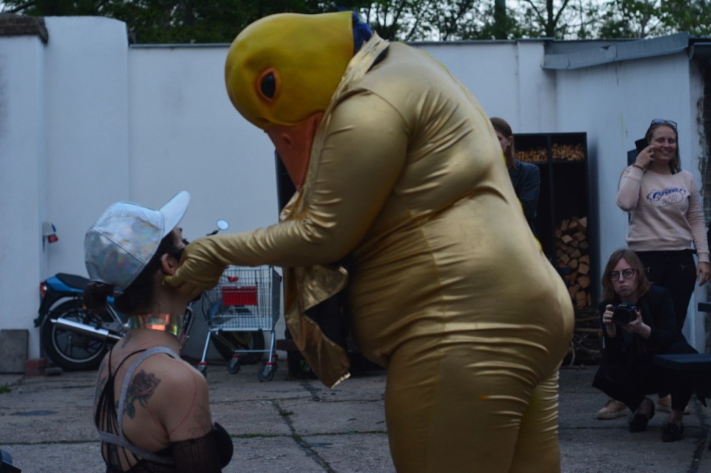 Darina Alster (1979) is visual artist, performer, publisher, curator and pedagog. She lives and works in Prague. She is mostly working with performance, spoken word, sound and video. Main topics of her artistic interest are Time, Identity and Relation ships. In her performances, she exceeds borders of known reality, interupting real situations with unknown and iracional things, then they will become the subconscious. She is mostly experimenting with new media, combine them with archaic medias, as a Astrology, Tarot, Mythology, Fairytales or other kinds of Archetypes. Her known projects are: Treasure, Piet, Personal Tarot, Naked Lunch, Bianca Braselli, Fembot, Thelematrix, Videoautomat, Memorial to victims of Capitalism, Imago Dei, The way of performance, Videoaltar, Dark Madona, Modern forms of invocating reality.