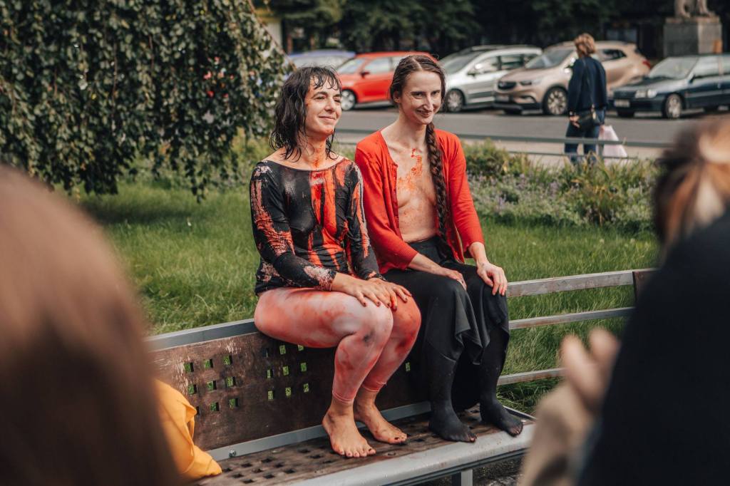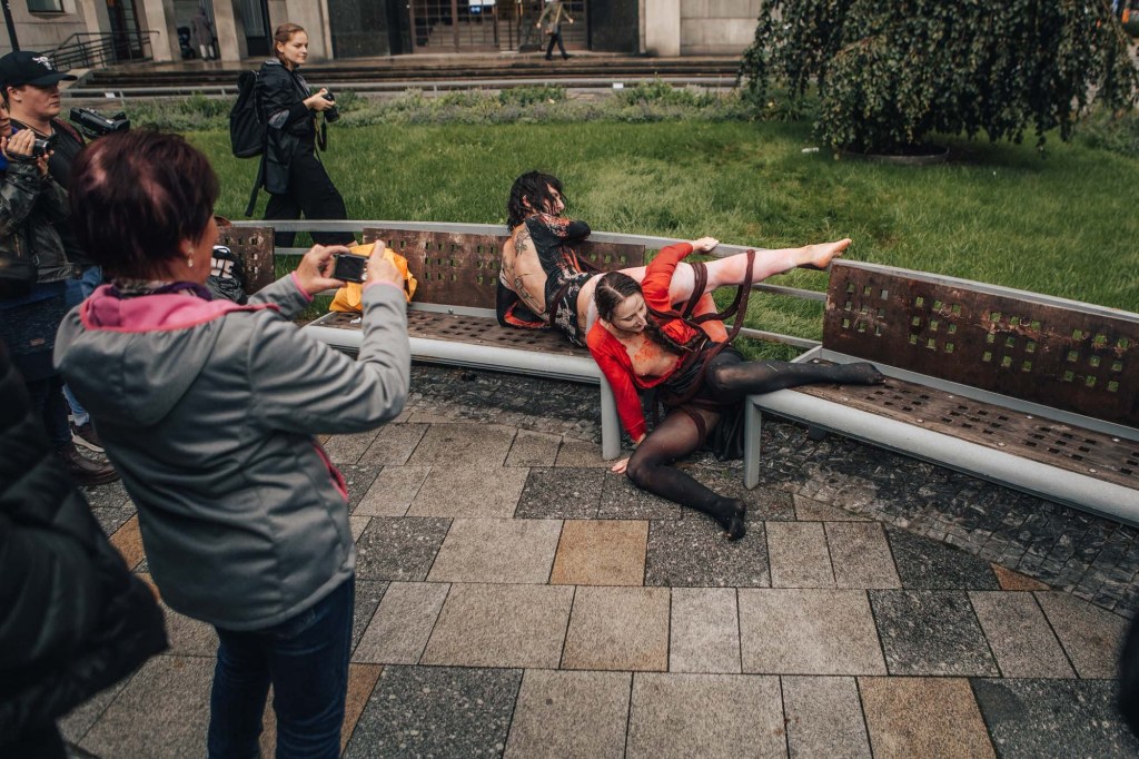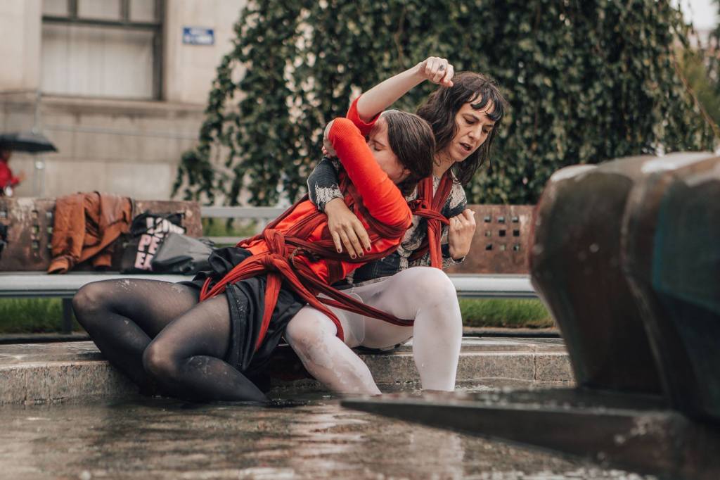 Inner Pressure. Dark side of woman soul. Archetype of bloody woman performed by fighting in the water with Jana Orlová, my great colleague and friend. This piece happened 26.9.2019 as a part of international performance festival Malamut, curated by Jiří Surůvka in city fountain in Ostrava