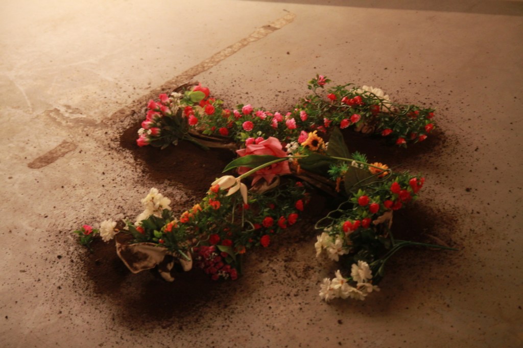Dark matter installation. Ritual atonement between Islam and Christian religion. Exhibited at Cella gallery, Opava, June 2016