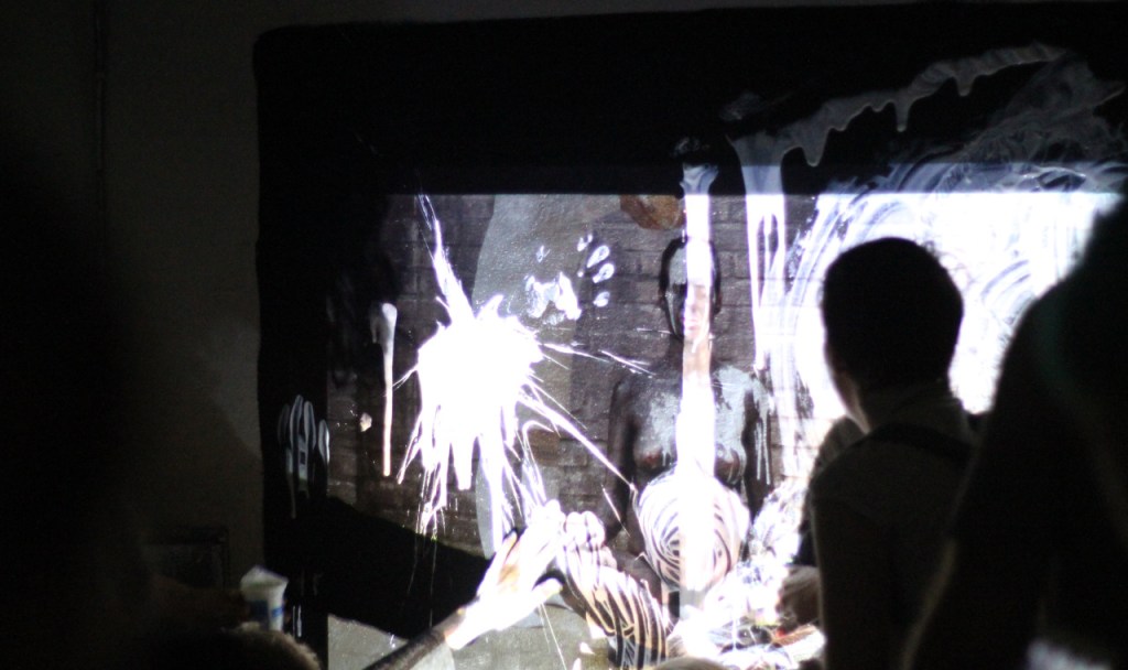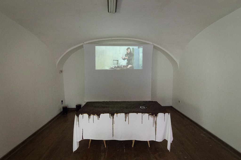 This was my participation on the performance Festival of Naked Forms FNAF curated by Lenka Klodová at Perla Divus gallery. Videoinstallation was recreated by viewers. If they wanted to see the video, they had to smash white jogurts on the black wall. The same weekend i gave birth to my daughter Laura.