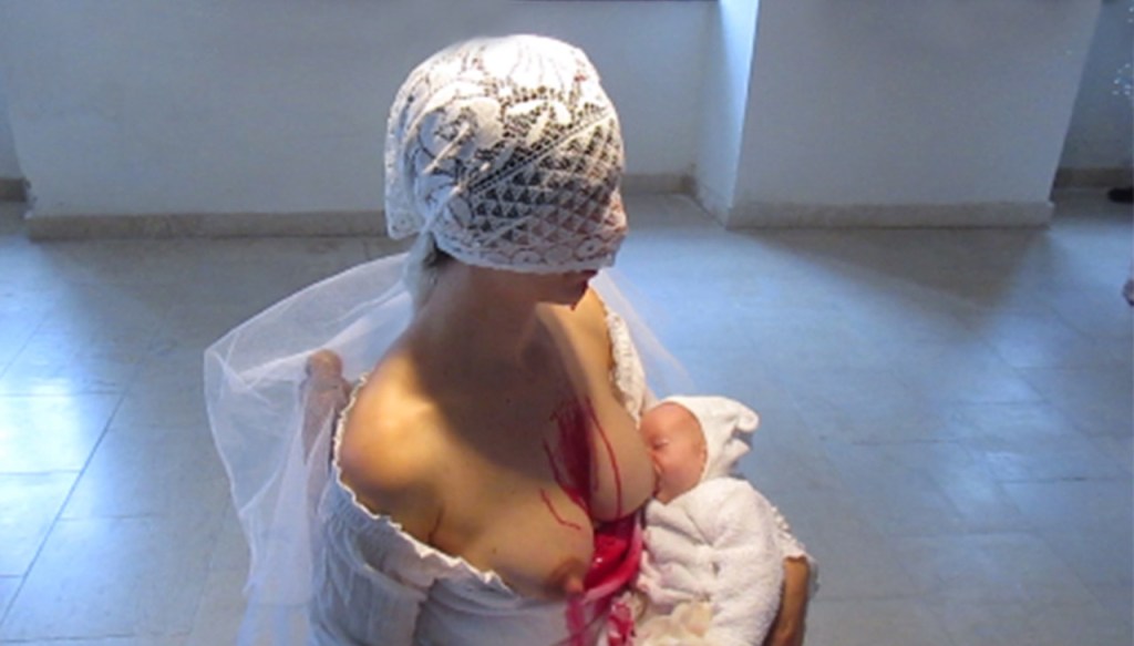 Amfora was a kind of family performance which i did in Orlova gallery in Kroměříž. It was version of Madonna.I was 4 weeks after labour of my second daughter. October 2016.