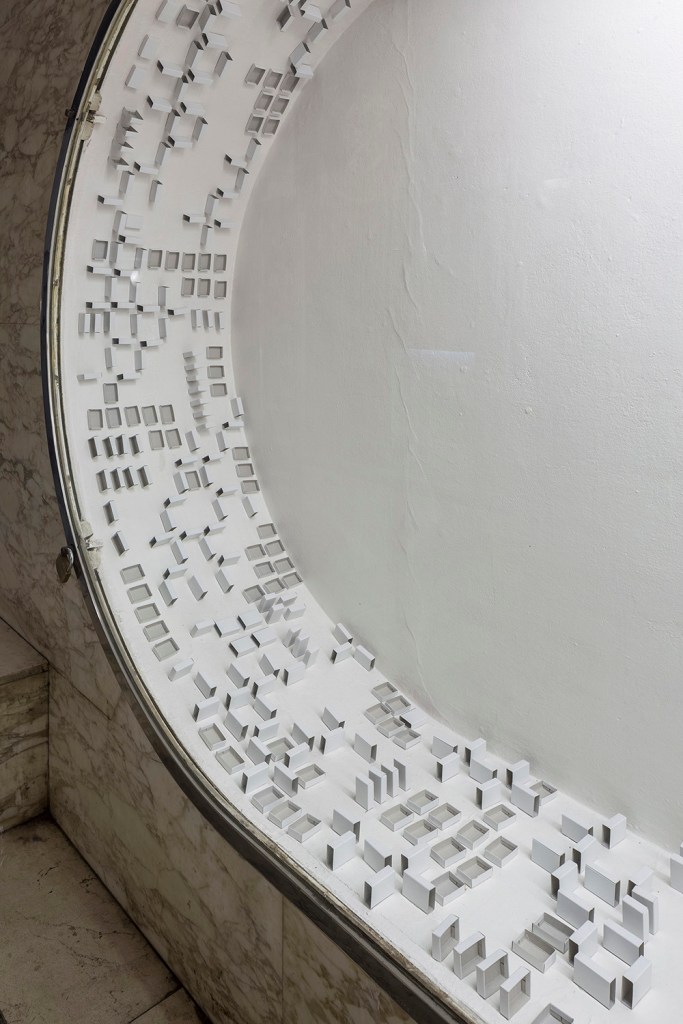 Tension X Qui vicerit, quod proelium Darina Alster, PXS Our vision is apocalyptic, revelatory, life-giving, salvational. Our vision is full of hope for a new life. The feminine force is the true essential force. Tension is an altar that has passed through a black hole. Town X becomes a never-ending Möbius strip. The altar has changed into a disheveled map of catastrophes. The body of a pregnant planet. Muslim ornaments blend with Christian rosettes. Fundamentalism is the fruit of fear and leads to the death of all that has meaning – this applies to Muslim terrorists as well as to the far right that has been so successful in both Europe and America. Feminism is the direct opposite of fundamentalism. Art is a way of thinking and can also be a cure. The exhibition is our shared prayer for civilization. Its foundation is a pattern, repeated like a slow prayer for the preservation of the living core capable of renewing itself after crisis or catastrophe. Perhaps, after humankind exterminates itself, planet Earth will merely shake us off and create new organisms. It’s hard to say whether they will be any wiser than our own civilization has been. Against the world’s decline, we posit Magic. Magic is the science of ordinary people. Magic is everyday life. Visita Interiora Terrae Rectificando Invenies Occultum Lapidem. The pattern must be repeated quietly like a prayer, mantra, or sigil. We must not give fear a chance. Let us value life and experience love. Fear gives rise to hatred; love brings together. Darina Alster and PXS on the new year 2017.